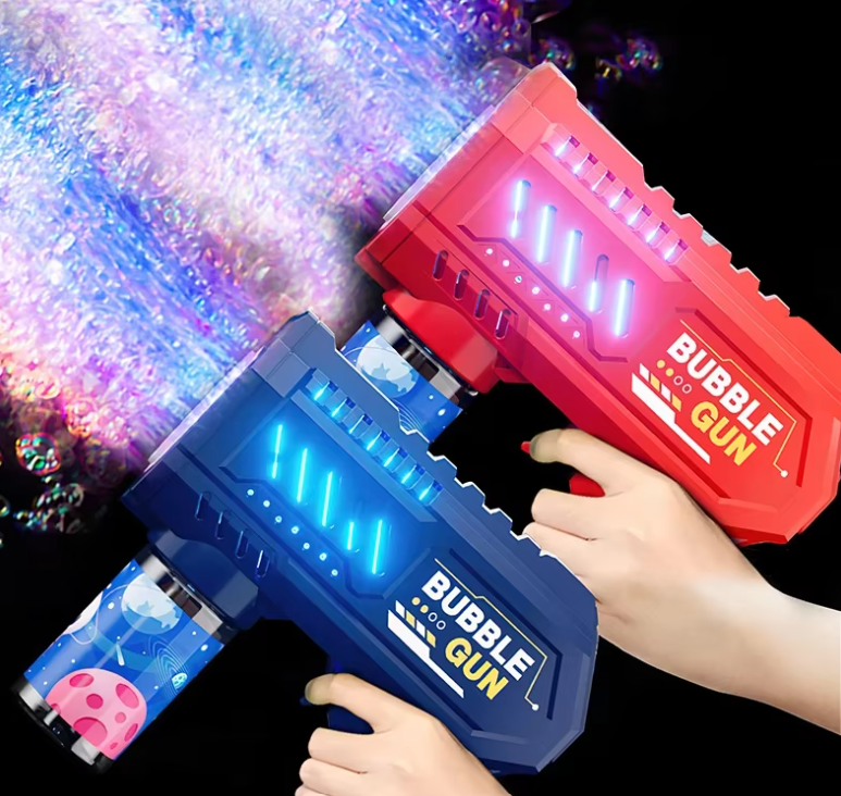 A BubbleGun combina bolhas em alta quantidade com luzes LED multicoloridas, criando um efeito visual impressionante, especialmente à noite. É a forma mais fácil de transformar festas, encontros em família e brincadeiras ao ar livre em momentos inesquecíveis.