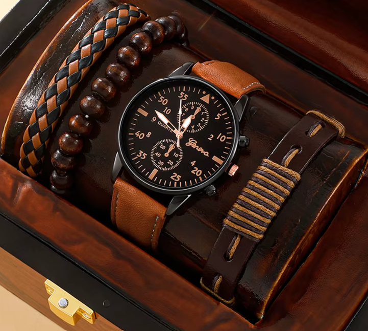 Um bom relógio muda a forma como você é percebido. O Relógio de Luxo Masculino traz um design sofisticado com pulseira de couro e mostrador clássico, transmitindo confiança, bom gosto e autoridade — seja no trabalho, em eventos ou no dia a dia.