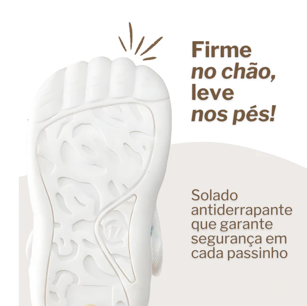 Os primeiros passos exigem cuidado máximo. Essa sandália envolve os pezinhos com materiais macios, leves e respiráveis, evitando suor excessivo, desconforto e escorregões. Assim, seu bebê caminha com mais confiança enquanto você tem a tranquilidade de saber que ele está protegido.