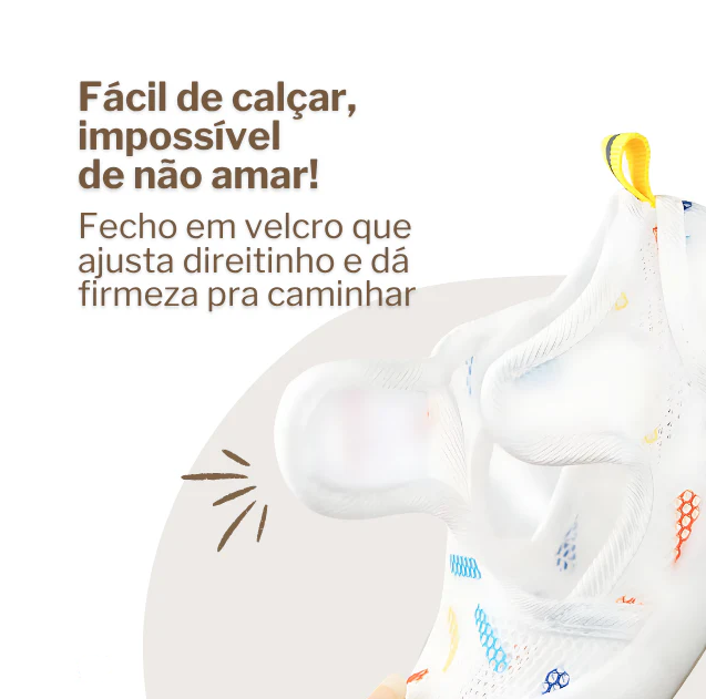 O design ventilado permite a circulação de ar constante, mantendo os pés frescos mesmo em dias quentes. Isso reduz o acúmulo de suor e previne irritações, garantindo conforto prolongado durante as brincadeiras.